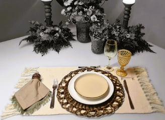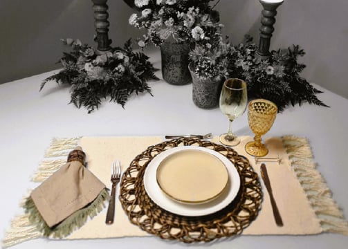 Cada mesa posta é uma obra de arte exclusiva. Esse modelo de Mesa Posta é preparada para refeições de forma planejada e elegante, utilizando louças, talheres, taças, guardanapos, arranjos e outros elementos decorativos para criar uma atmosfera acolhedora, funcional e estética. Mais do que apenas utilitária, ela traduz cuidado, afeto e estilo, valorizando o momento da refeição.
